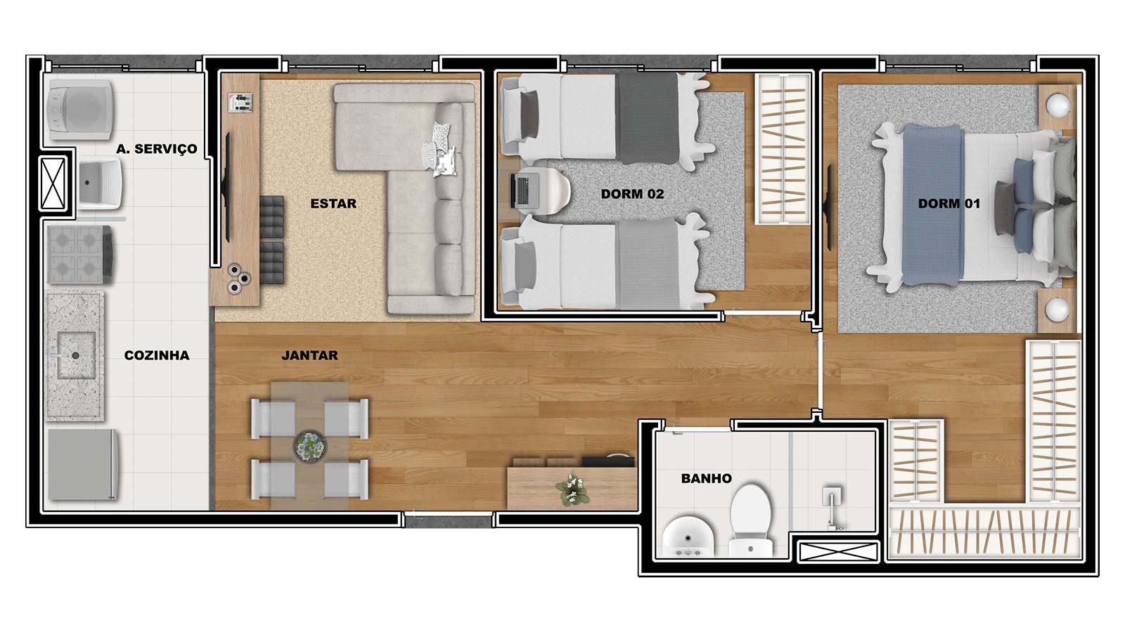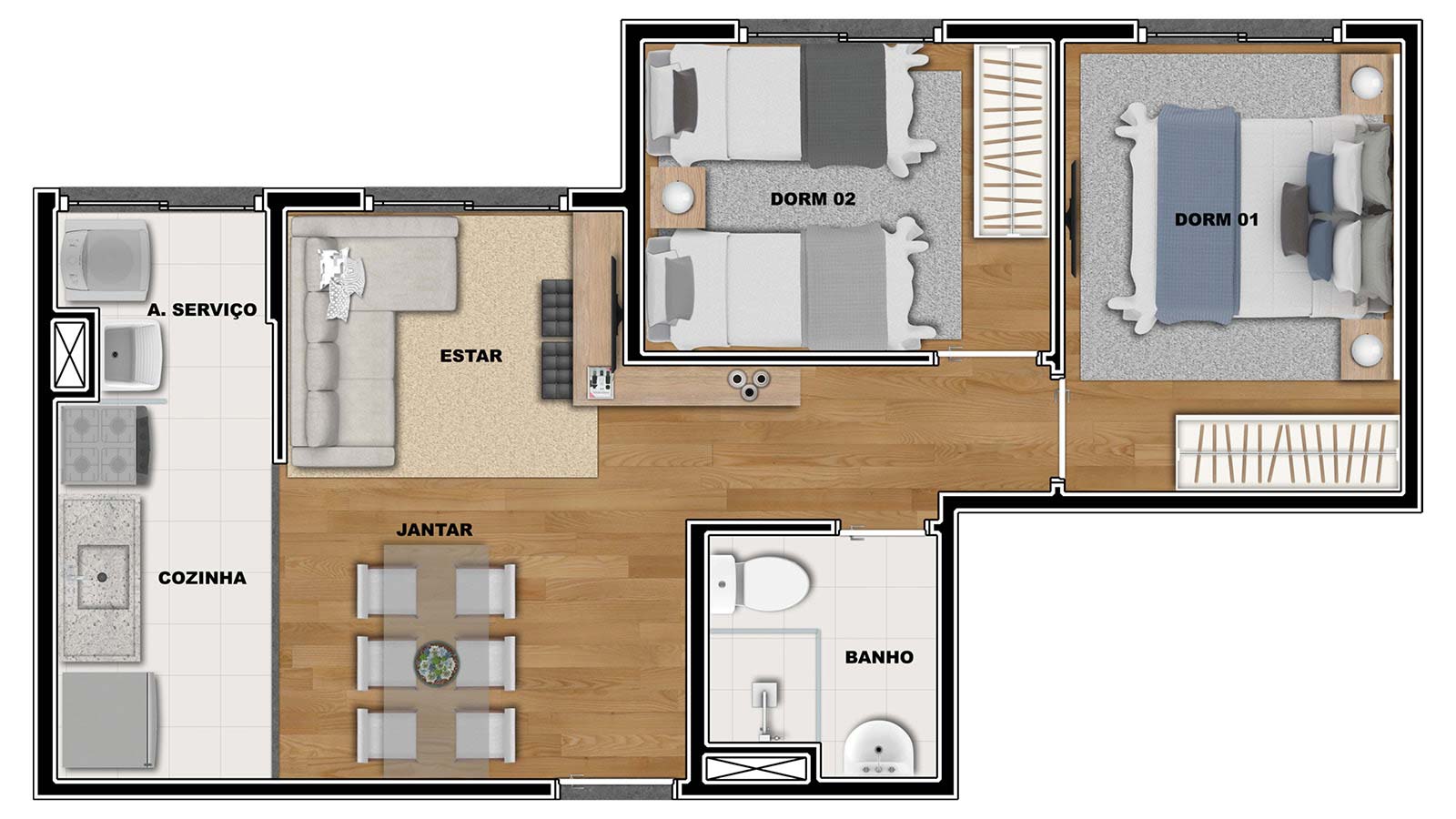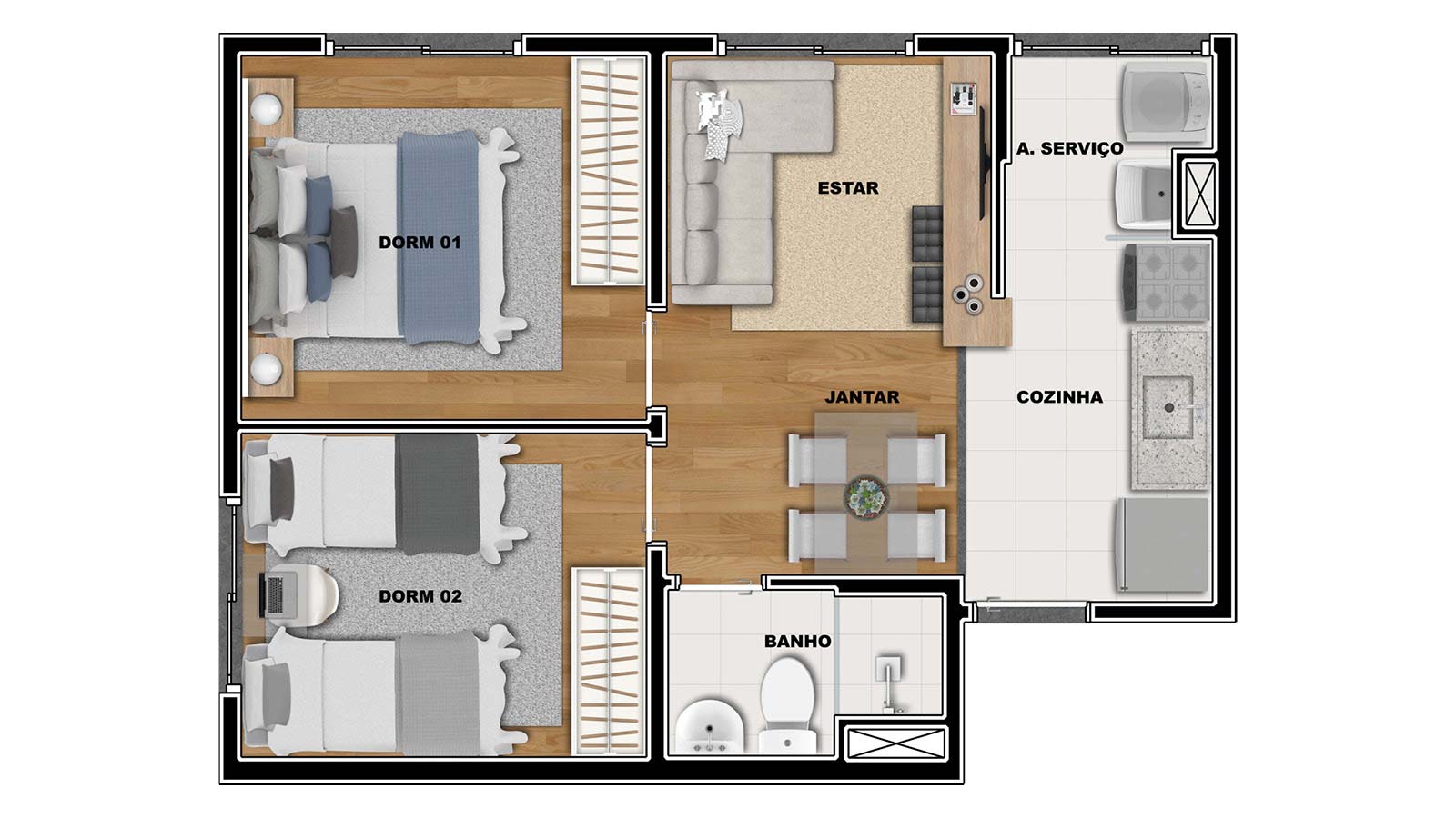 2 quartos Sem varanda