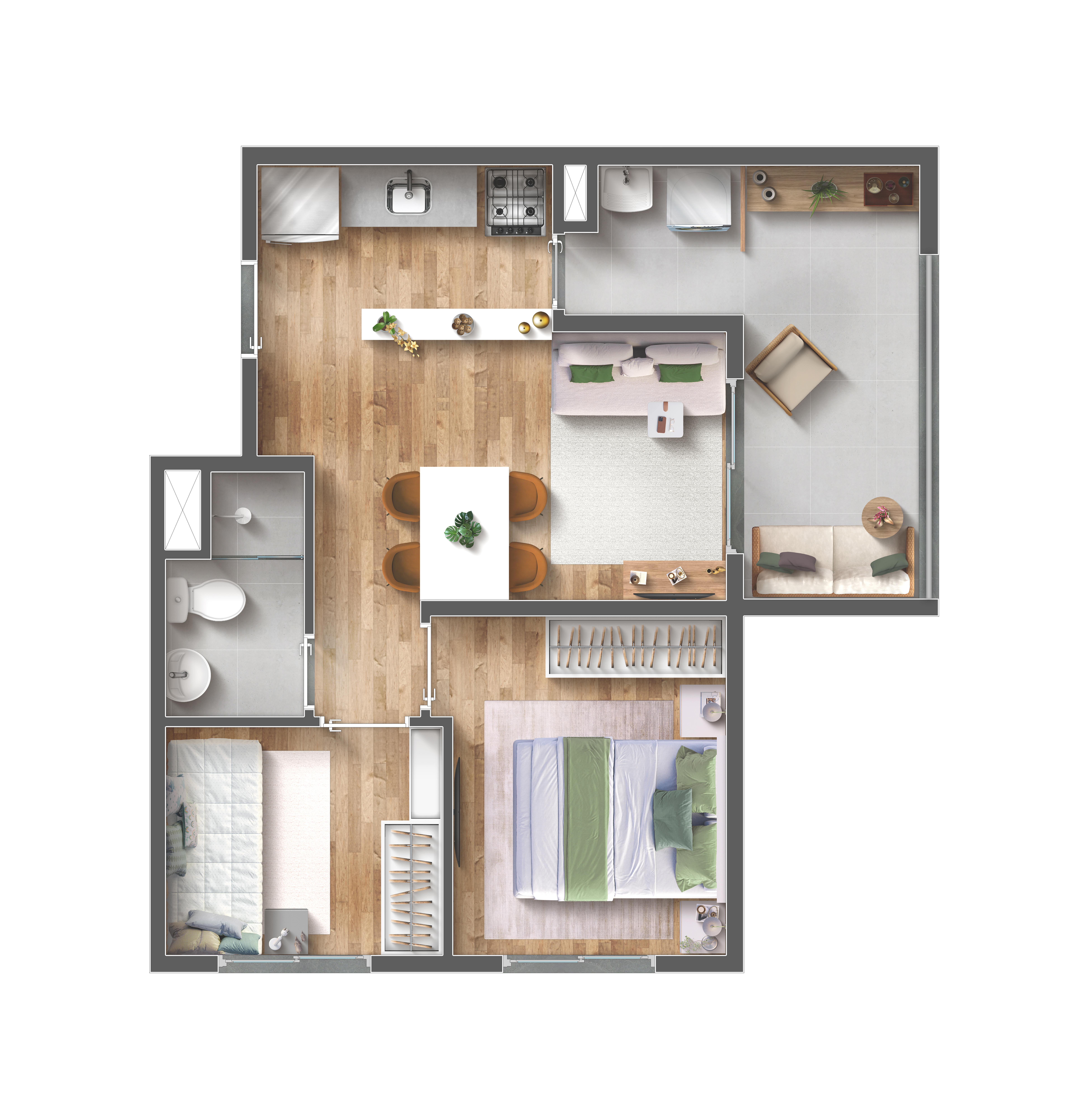 2 quartos Com varanda