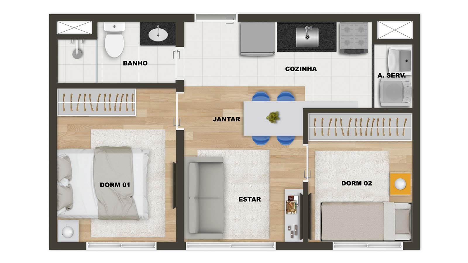 2 quartos Sem varanda