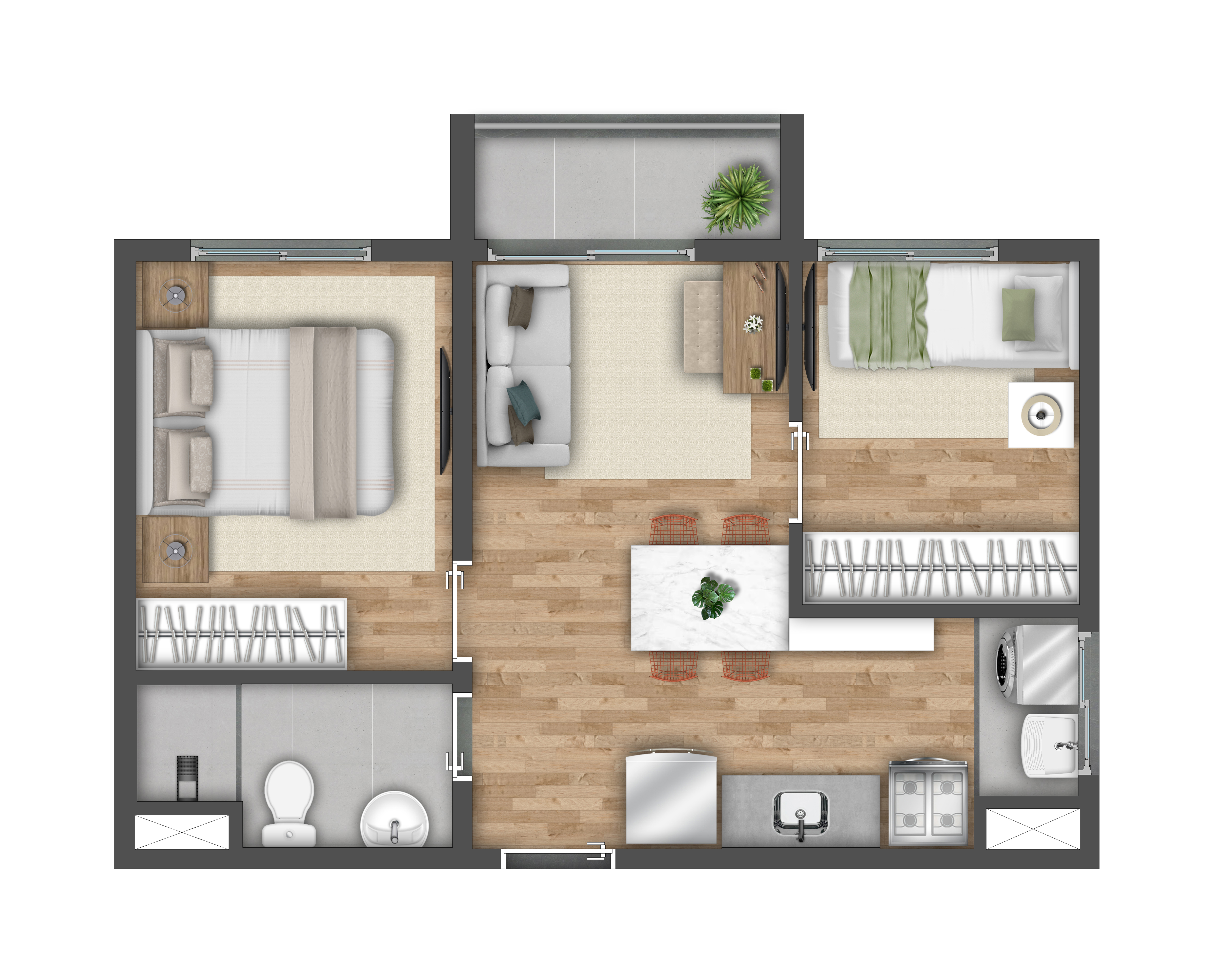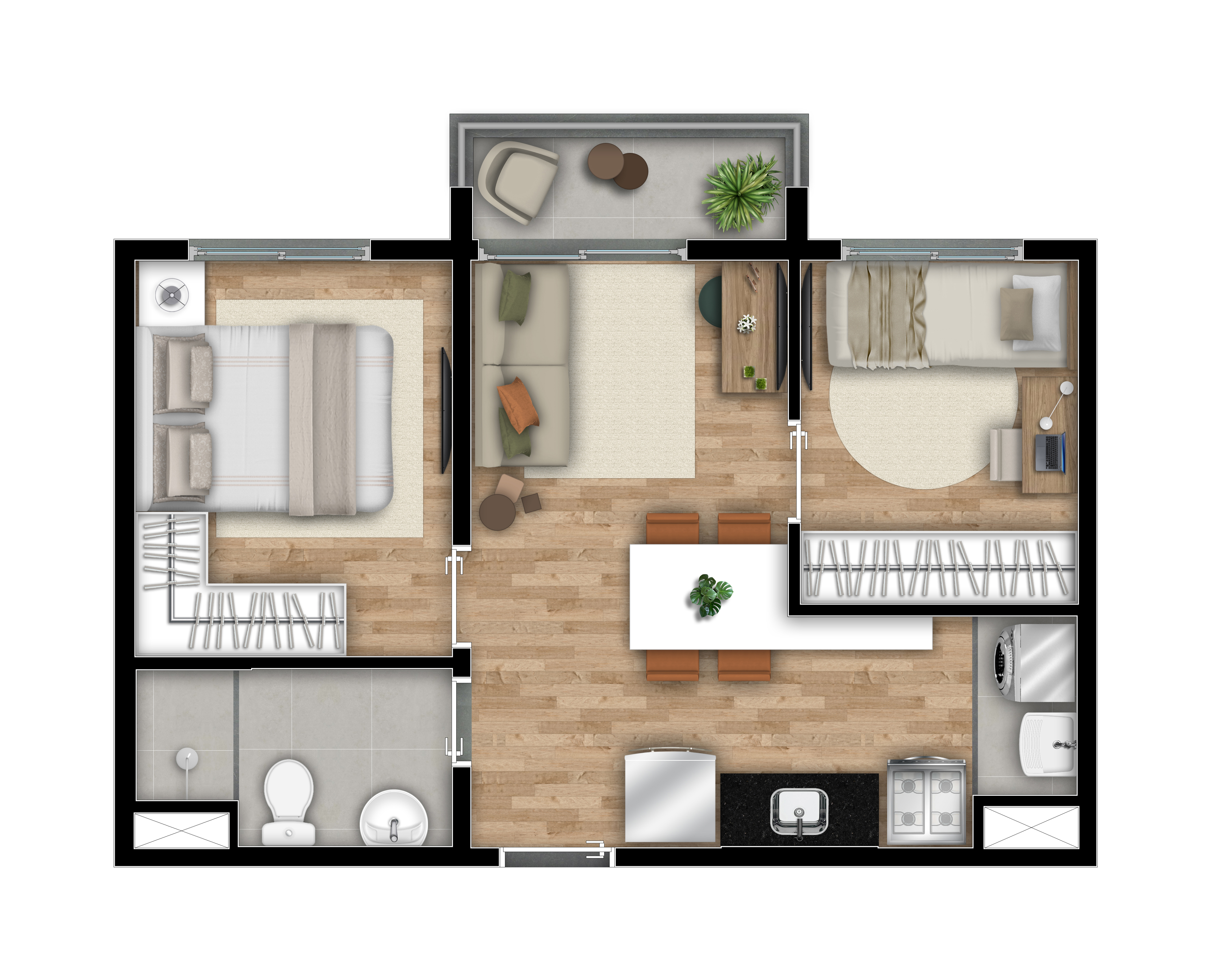 2 quartos Com varanda